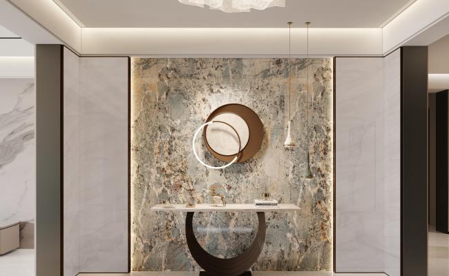 設計理念 輕奢風格的核心在于“簡約中見精致”,摒棄傳統(tǒng)復式的繁復裝飾,強調(diào)以現(xiàn)代手法融合古典元素。設計注重開放性與私密性的平衡,通過旋轉(zhuǎn)樓梯連接上下層,既增強空間流動性,又保留獨立功能區(qū)的靜謐感。材質(zhì)選擇上,天然石材、金屬與絲絨的碰撞,既保留法式古典的厚重感,又賦予現(xiàn)代輕奢的精致氣息。 核心元素 材質(zhì)?:天然石材(大理石)、金屬(黃銅、不銹鋼)、絲絨和玻璃是輕奢風格的標志性材質(zhì)。這些材質(zhì)通過紋理碰撞(大理石與金屬的搭配)提升空間層次感,同時賦予現(xiàn)代氣息。 色彩?:以中性色調(diào)(黑白灰、米色)為基底,局部點綴墨綠、藏藍等跳色,例如中空的背景掛畫采用撞色拼接,既清新又顯高級。 造型?:家具和燈具造型簡潔,注重功能性與美觀性結(jié)合。無拉手柜體、懸浮式結(jié)構(gòu),以及環(huán)抱形沙發(fā)設計,通過柔化空間邊界增添大宅藝術(shù)感。 空間布局要點 功能分區(qū)?:采用中空兩層式體塊設計,將上下層增加交流互動,通過中空釋放感知空間;樓梯玻璃護攔拉大視角,弧形增強動線流暢性。 自然采光?:復式需最大化利用寬景窗,客廳采用落地窗設計,搭配兩層一寫到底簾強調(diào)大宅氣派;同時通過中空的背景,頂天立地設計手法,增強空間立體感。 適用場景 輕奢風格復式大宅適合追求生活品質(zhì)但不喜歡浮夸裝飾的都市人群,尤其適合多代同堂家庭。其設計既滿足現(xiàn)代都市對舒適度的需求,又能通過細節(jié)傳遞獨特品味,半開放式廚房與餐廳的融合,既促進家庭互動,又提升烹飪效率。